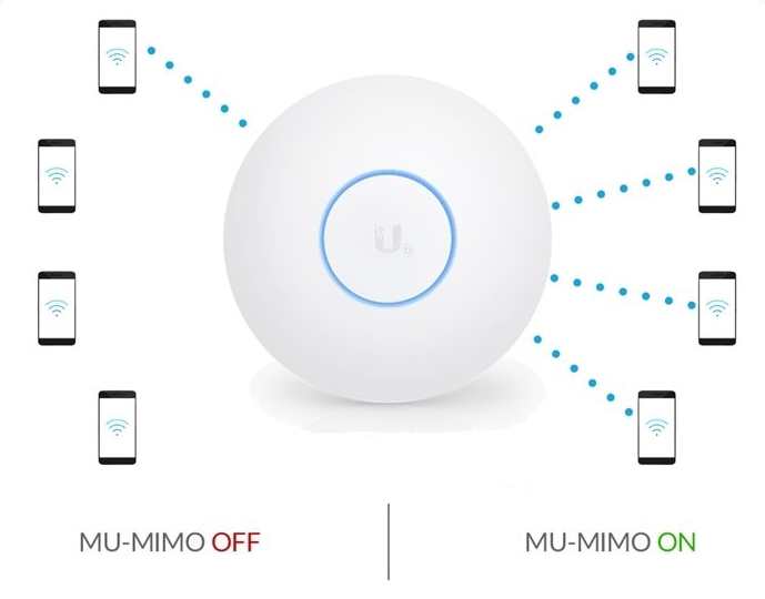 Díky MU-MIMO (Multiple User - Multiple In - Multiple Out) technologii je UAP-AC-HD schopno komunikovat s několika zařízeními ve stejný čas: